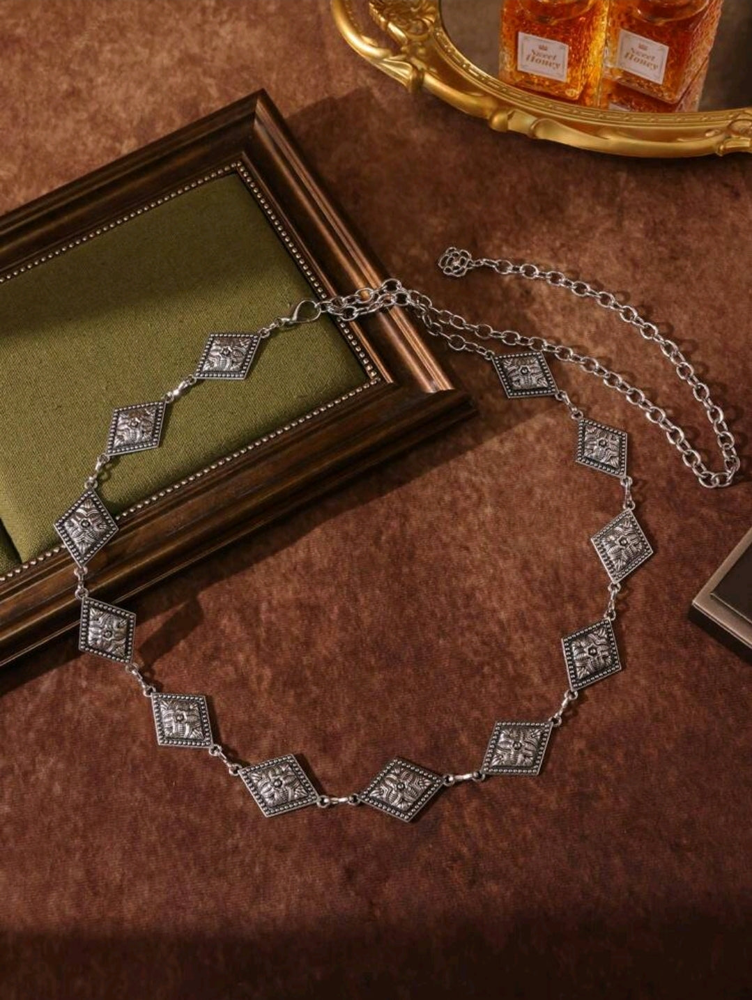 Silver diamond waist chain